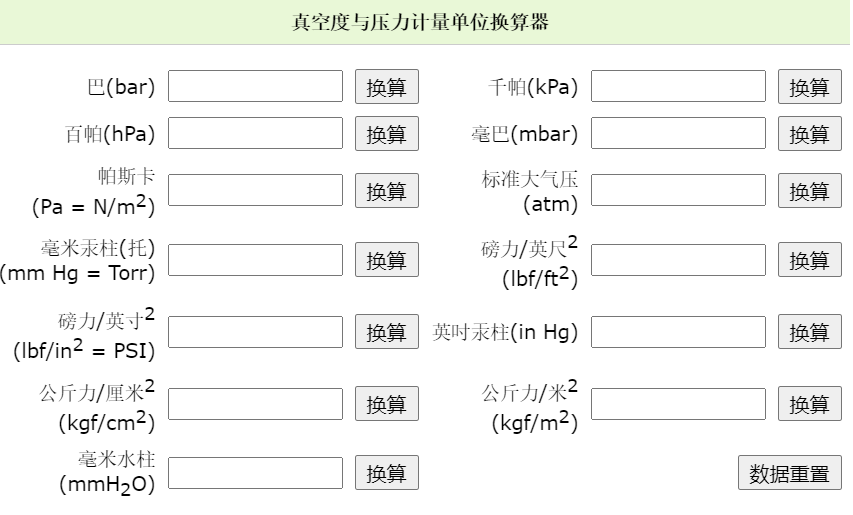 真空度與壓力單位自動換算器(實用免費工具)